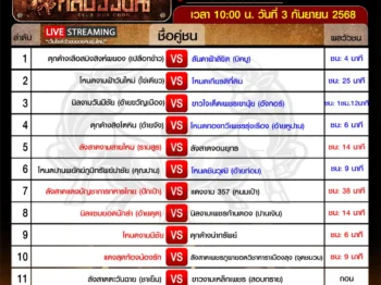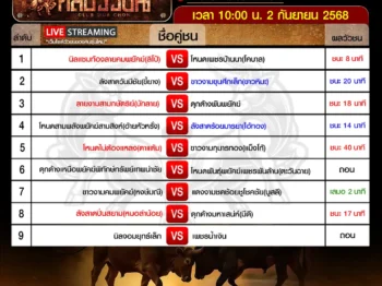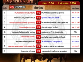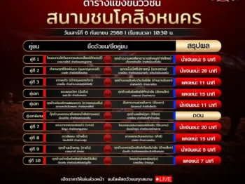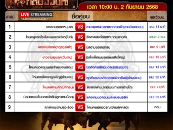สรุปผลวัวชน สนามกีฬาชนโคสิงหนคร วันเสาร์ ที่ 6 กันยายน 2568