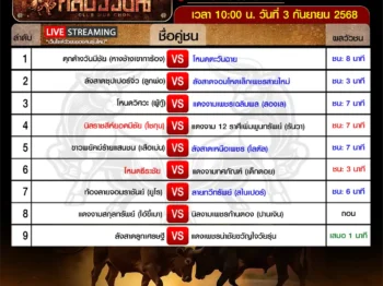 สรุปผลวัวชน สนามกีฬาชนโคนครตรัง วันเสาร์ ที่ 6 ก […]